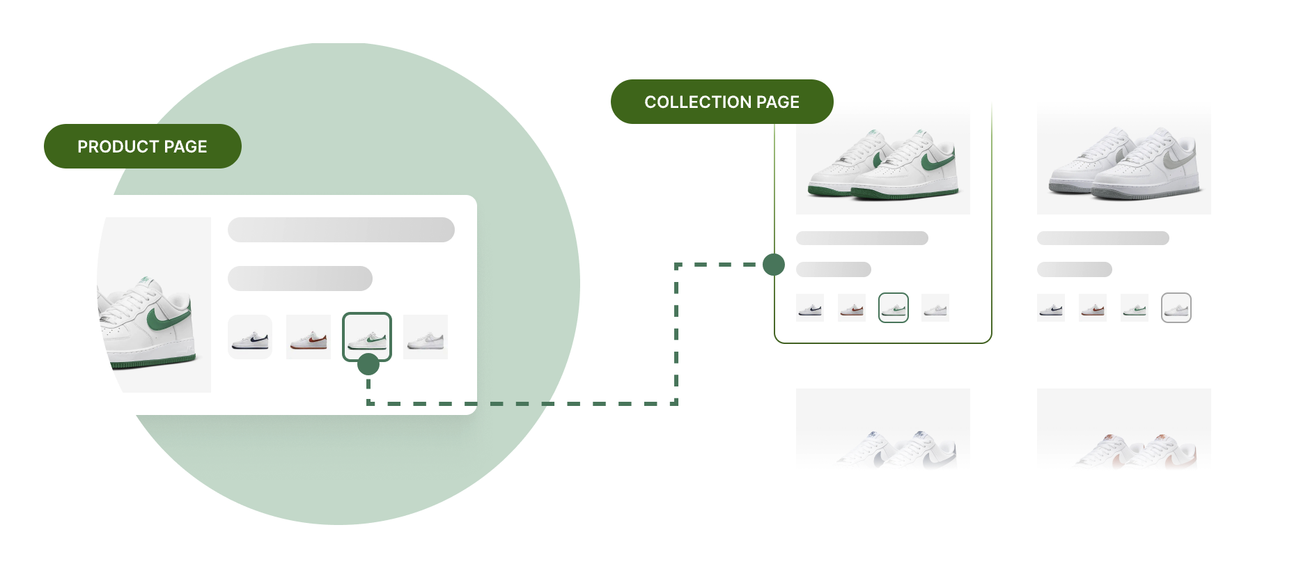 * Display product variants as color or image swatches on product pages, collection pages, homepages, and search results.