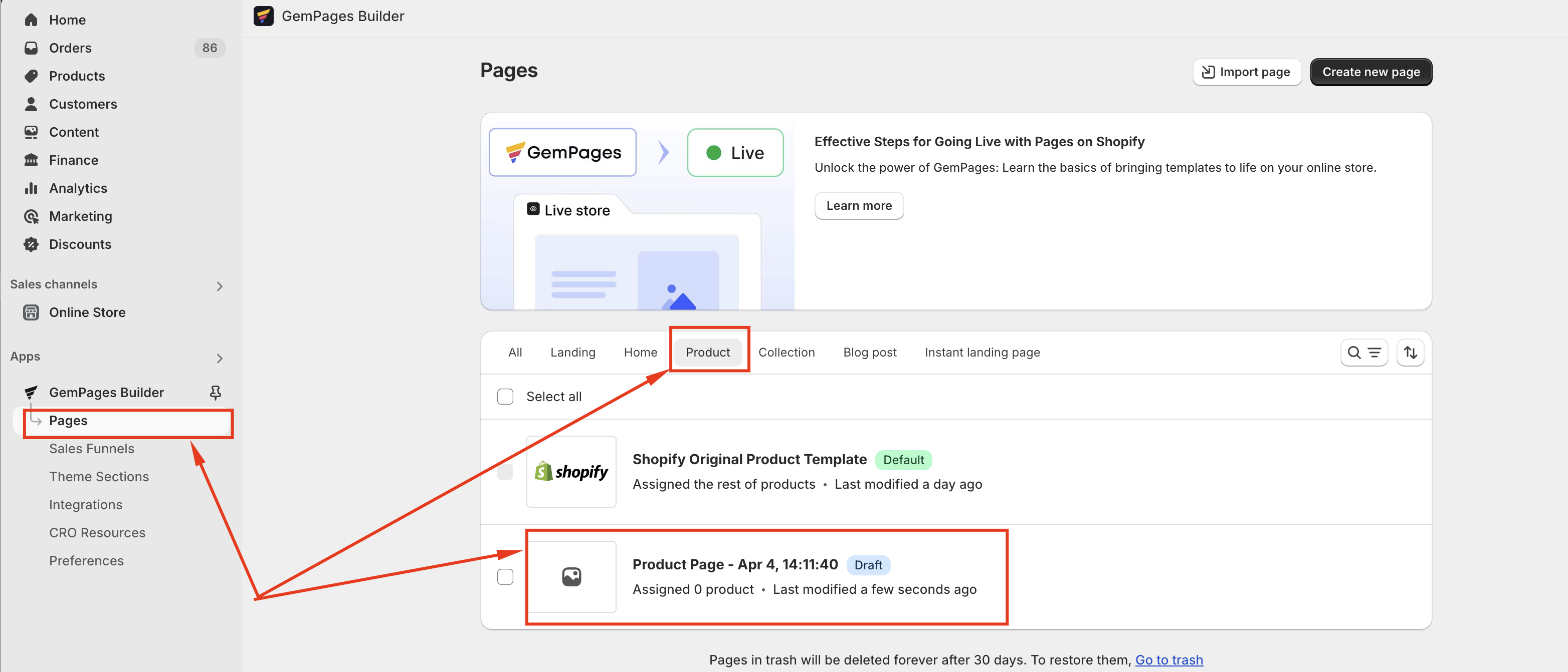 * Select **Product Swatches** or **Product Variants** -> choose any style variant of Gempage and show