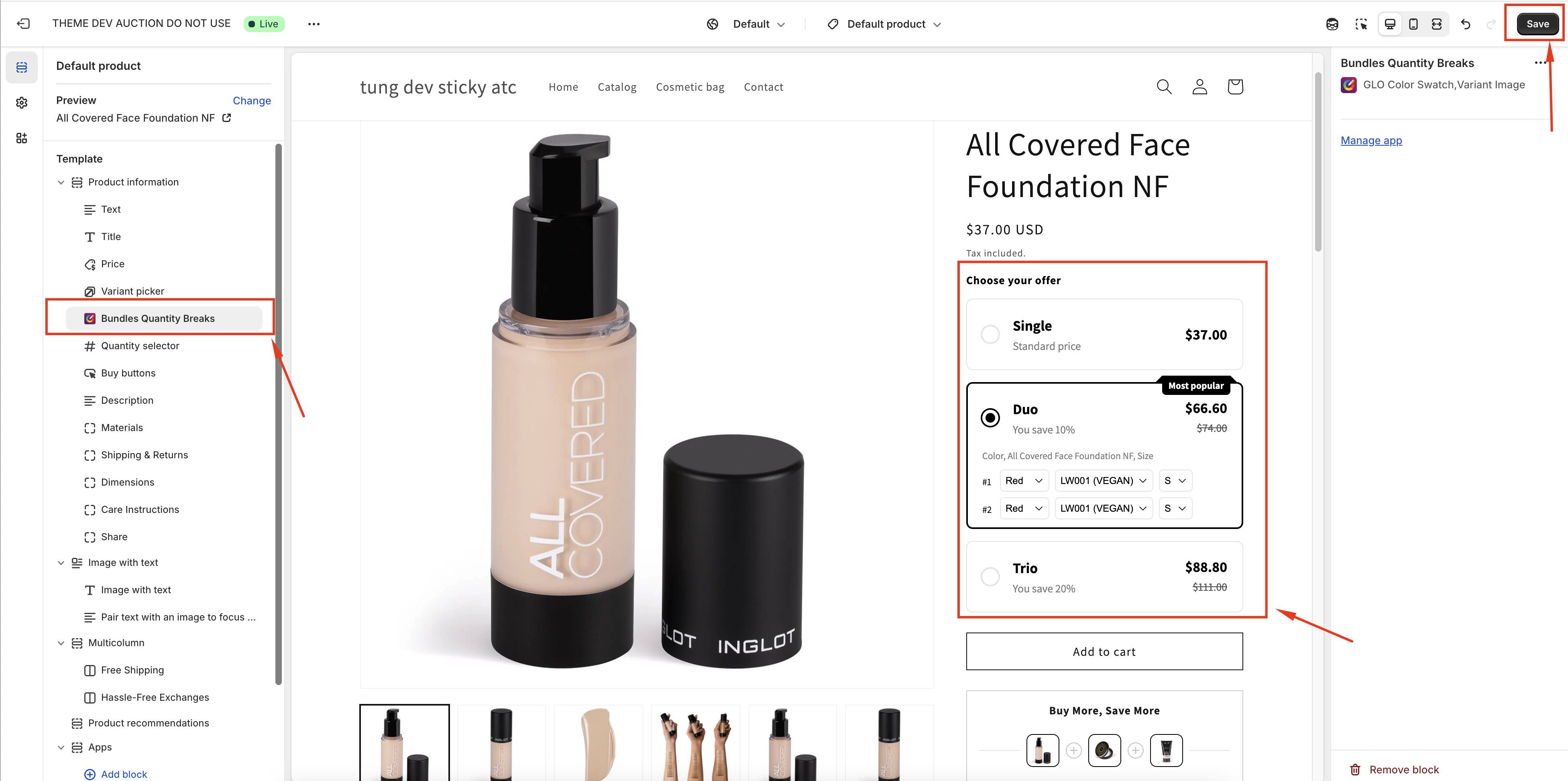3. Test different quantity selections to confirm the correct discount is applied.