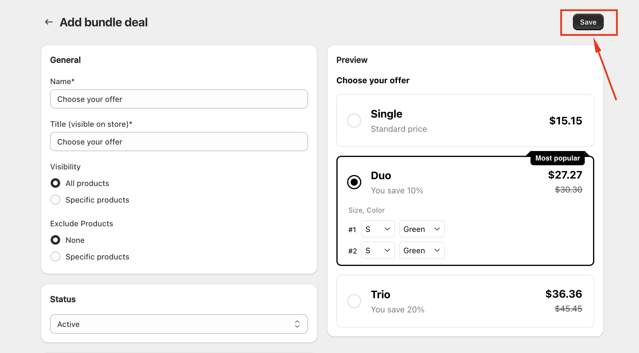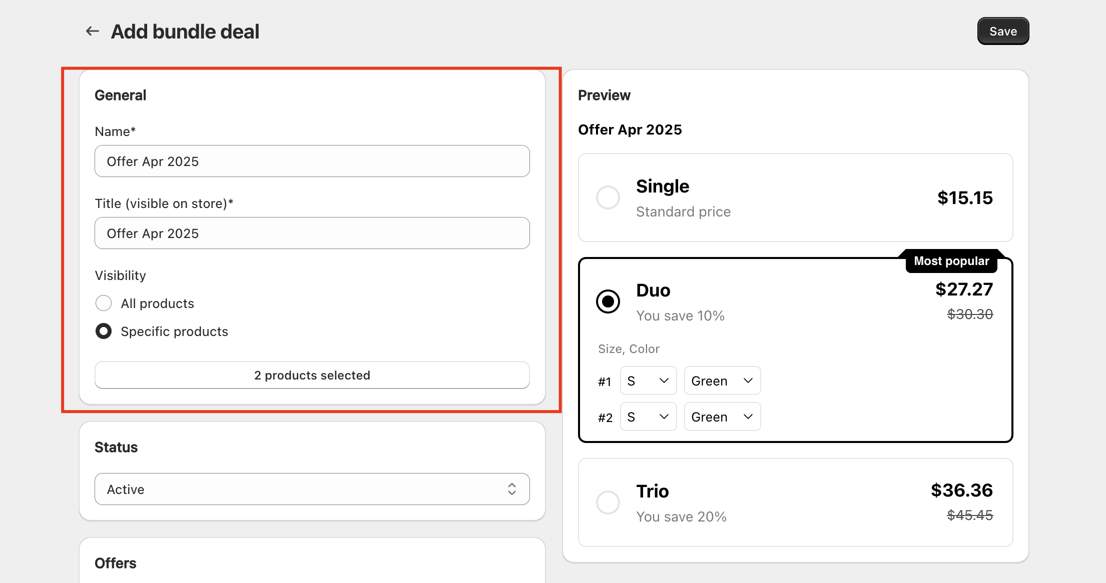 * <mark style="color:orange;">**Title \***</mark>**:** Title for offer bundle
