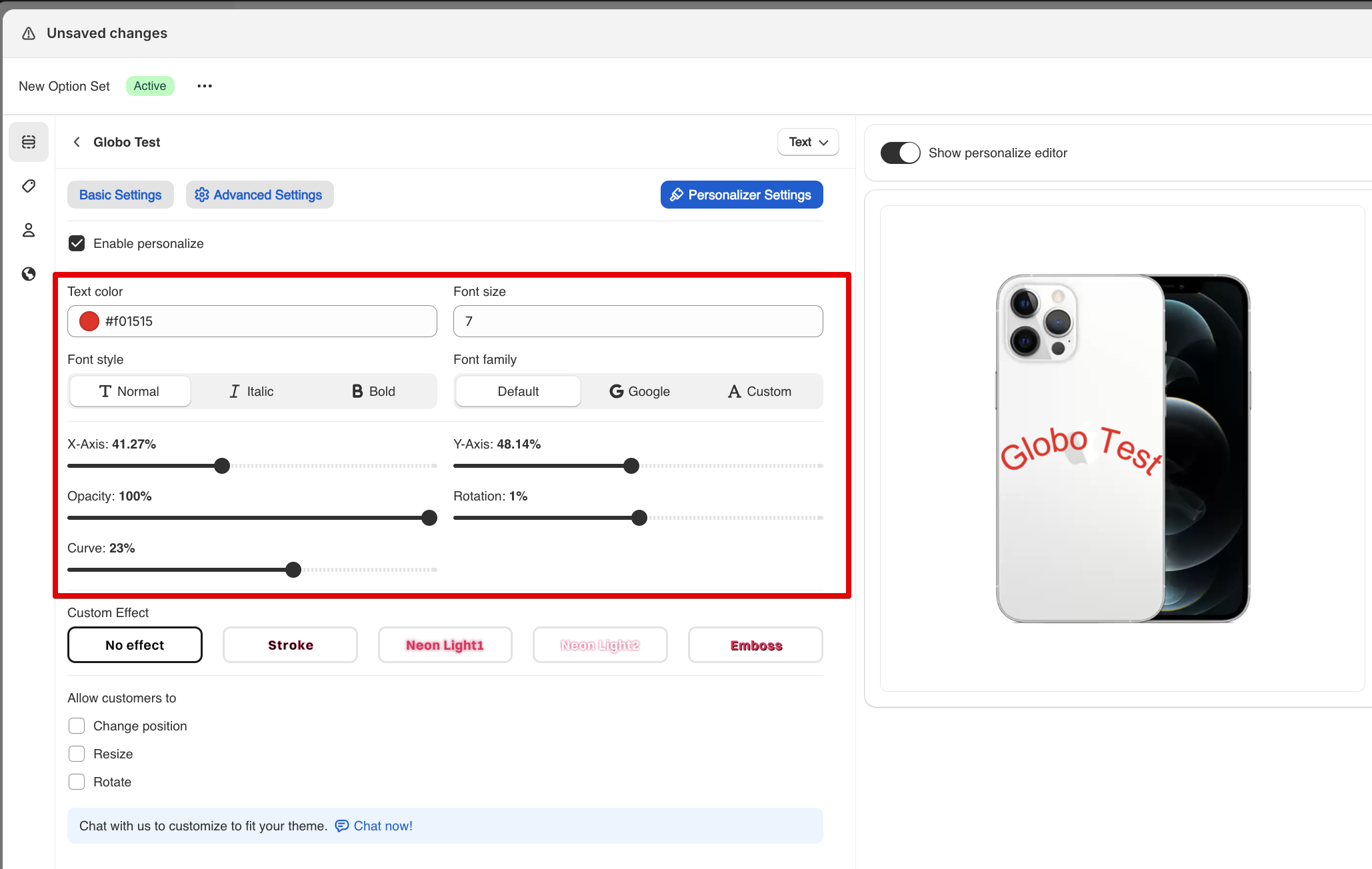 Any changes you make here apply only to the live preview and will not sync back to the Basic settings.