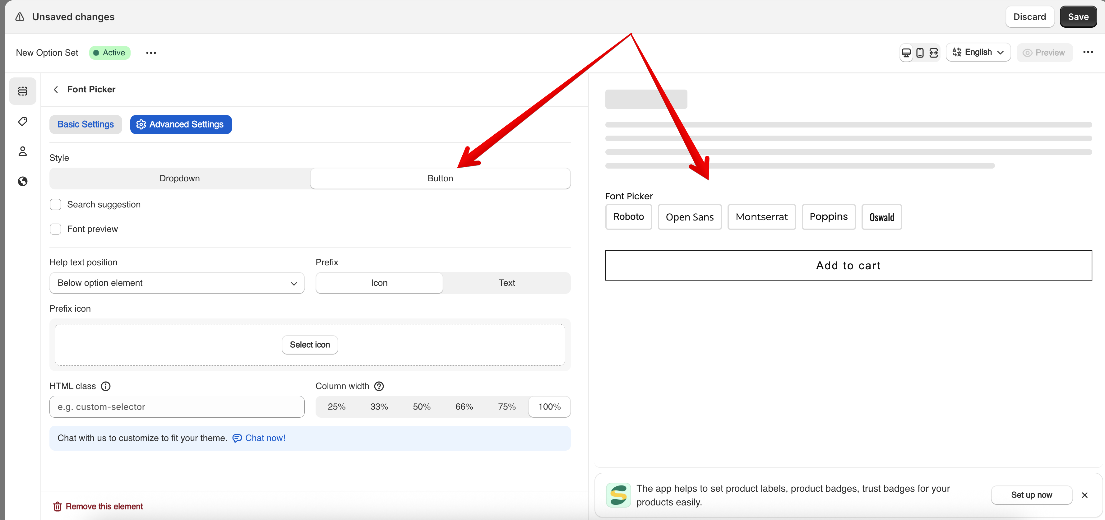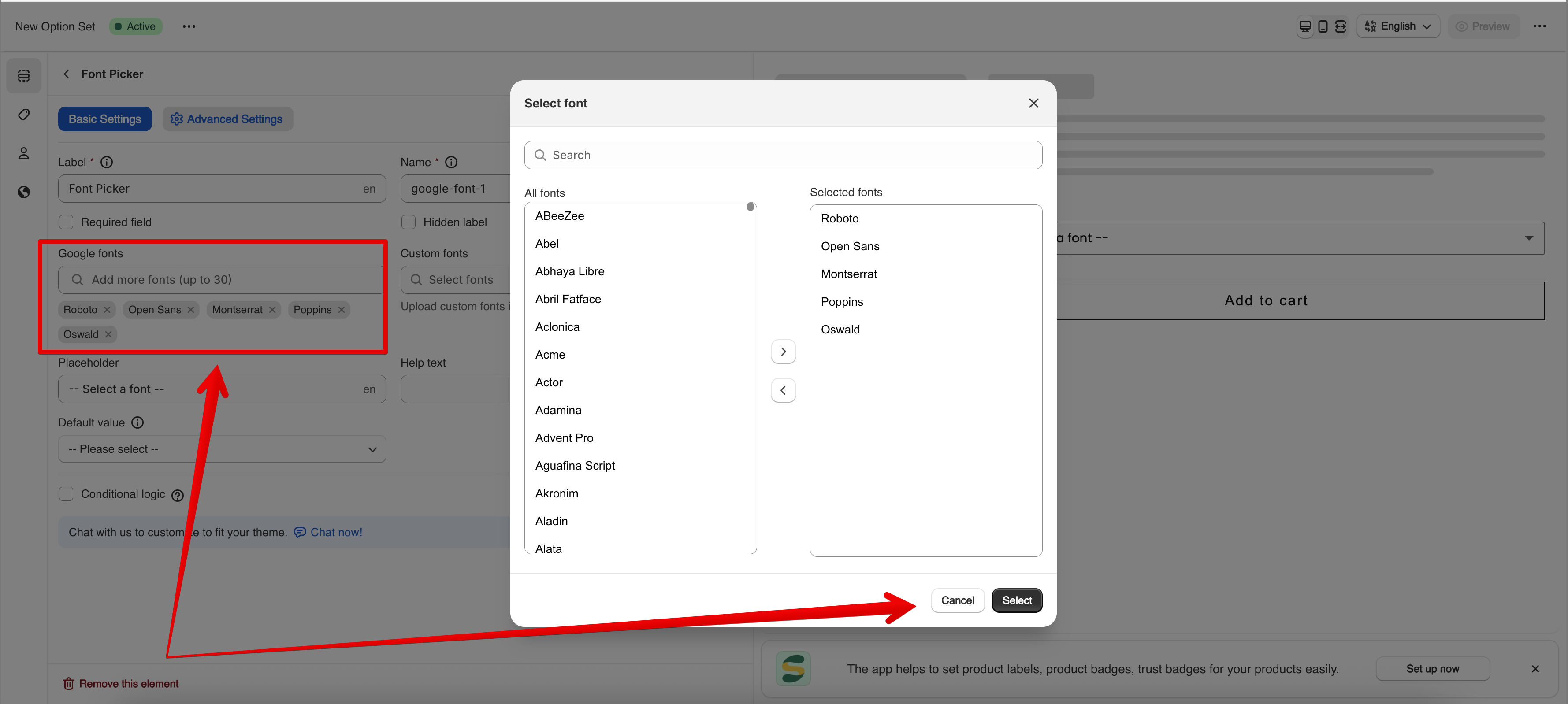 The Font Picker enables customers to visually preview and select their preferred font style directly on the product page. This enhances the personalization experience and increases customer confidence in their selections.