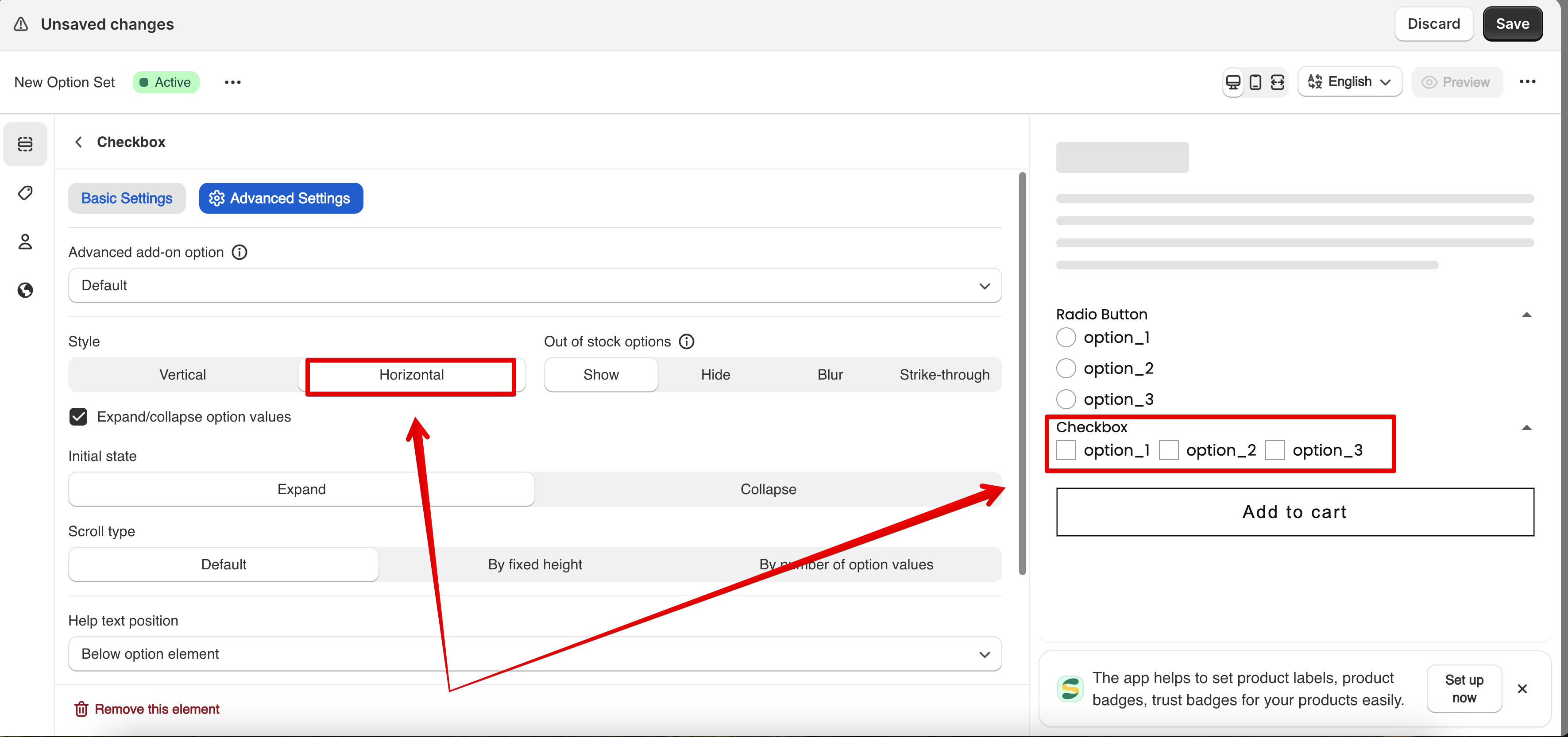 * **Use Case**: Ideal when you want the customer to **choose one and only one** required option — for example, size (Small, Medium, Large).