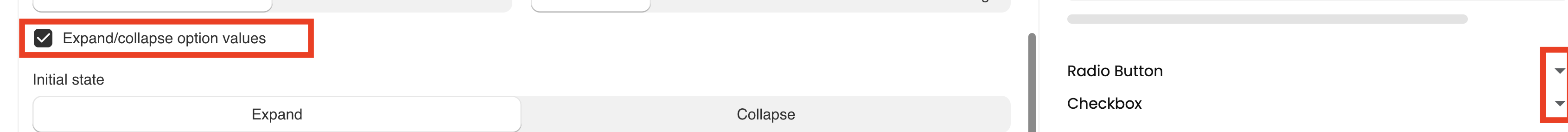 Both **Radio Buttons** and **Checkboxes** allow you to configure: