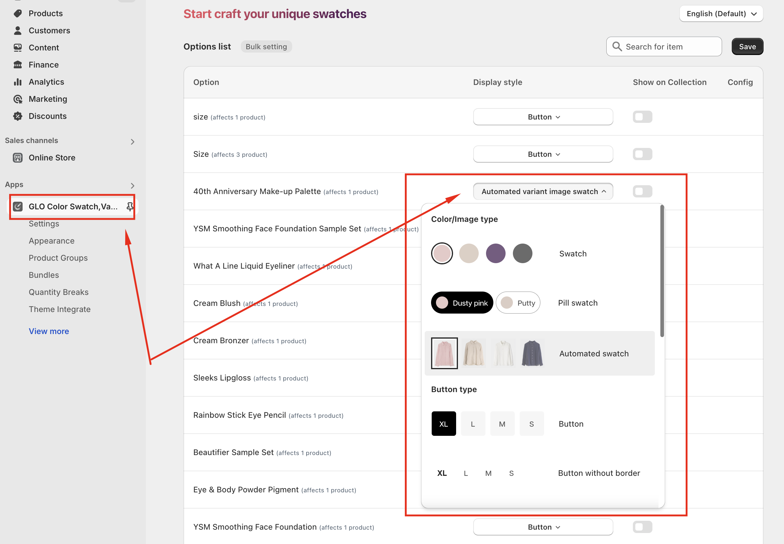 ### <mark style="color:blue;">**1. Enable swatch setting on product page**</mark>